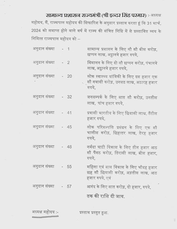 अध्यक्ष महोदय, एक और विषय मैं इसमें जोड़ना चाह रहा हूँ, यह एक ऐसा विषय है कि जन संपर्क के माध्यम से जो बातें आ रही हैं. योजनाएँ होती हैं, 4-6 पोस्ट के लिए आप आवेदन करते हैं, चाहे वनाधिकार के पट्टे बाँटे या किसी की वैकेंसी, लेकिन उनका प्रचार प्रसार इस कदर होता है और उसमें जिस प्रकार से जो खर्चा किया जाता है, बजाय इस प्रकार से खर्च करने की वो जो राशि है उसका सदुपयोग अगर गरीब क्षेत्र से जुड़ी हुई योजनाओं के लिए किया जाए तो एक महत्वपूर्ण विषय है. यही बात कहते हुए मैं इन बिन्दुओं पर चूँकि नाराजगी है....
