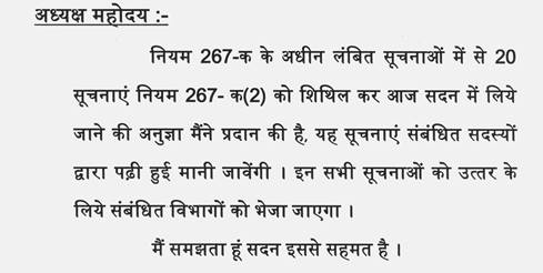 अध्यक्ष महोदय - (...व्यवधान) विधान सभा की कार्यवाही प्रश्नकाल तक के लिए स्थगित .