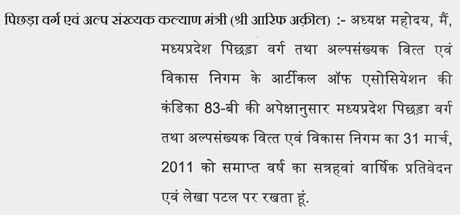 नेता प्रतिपक्ष (श्री गोपाल भार्गव) - अध्यक्ष महोदय, आपकी व्यवस्था के लिये धन्यवाद.