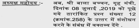 श्री बाला बच्चन - अध्यक्ष महोदय, सुसाइड नोट की जांच रिपोर्ट अभी-अभी आयी है, इस कारण से अब जो अपराध बना है, अपराध के मुताबिक हम कायमी करेंगे और उन अपराधियों को हम गिरफ्तार करेंगे. मैंने जैसा आपको बताया है कि आज ही तत्काल एसआईटी गठित करके हम उनको जेल के शिकंजों में पहुंचायेंगे.