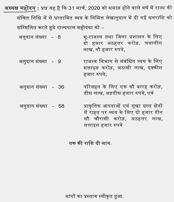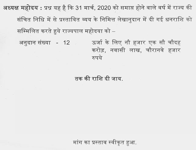वर्ष 2019-2020 की अनुदान की मांगों पर मतदान (क्रमश:)