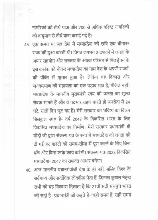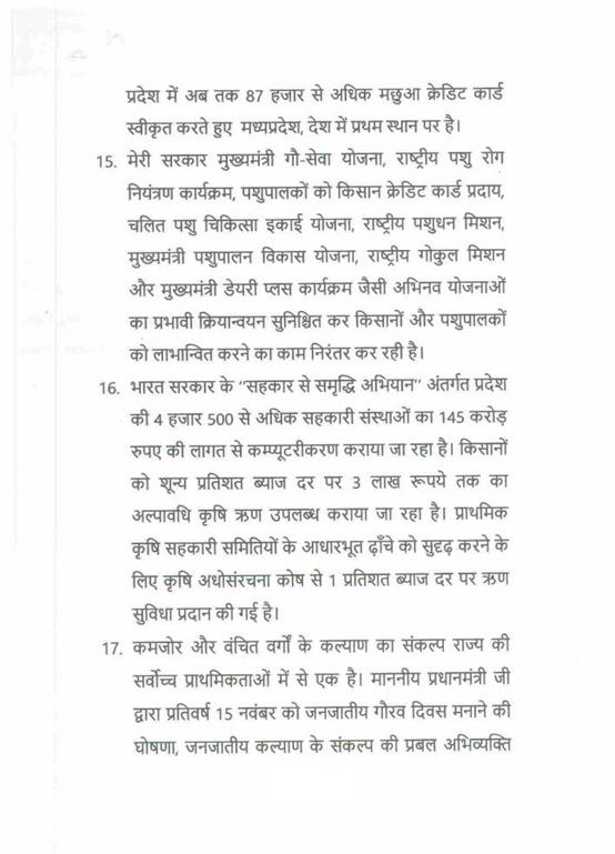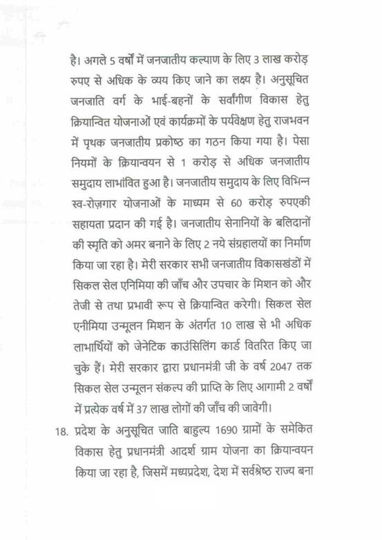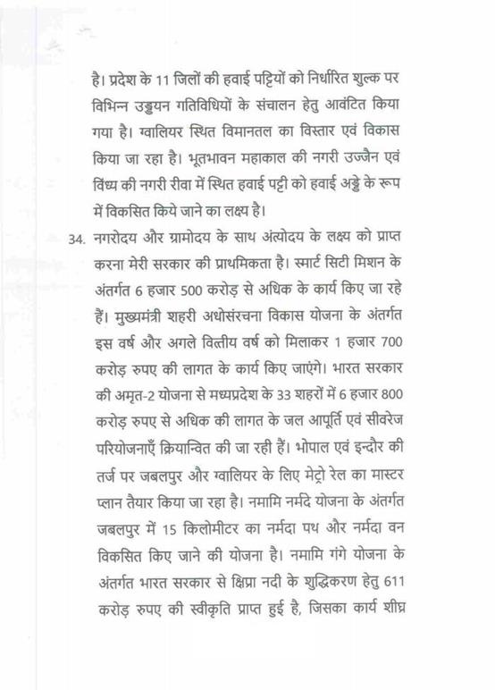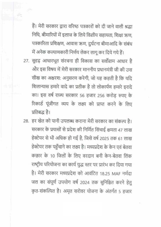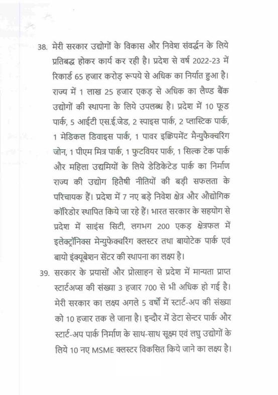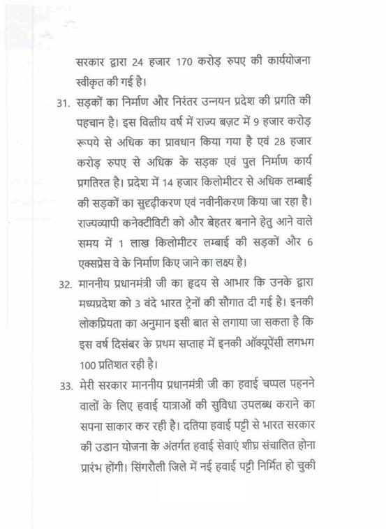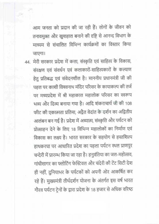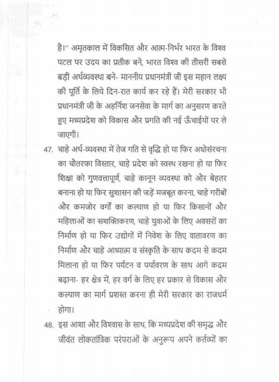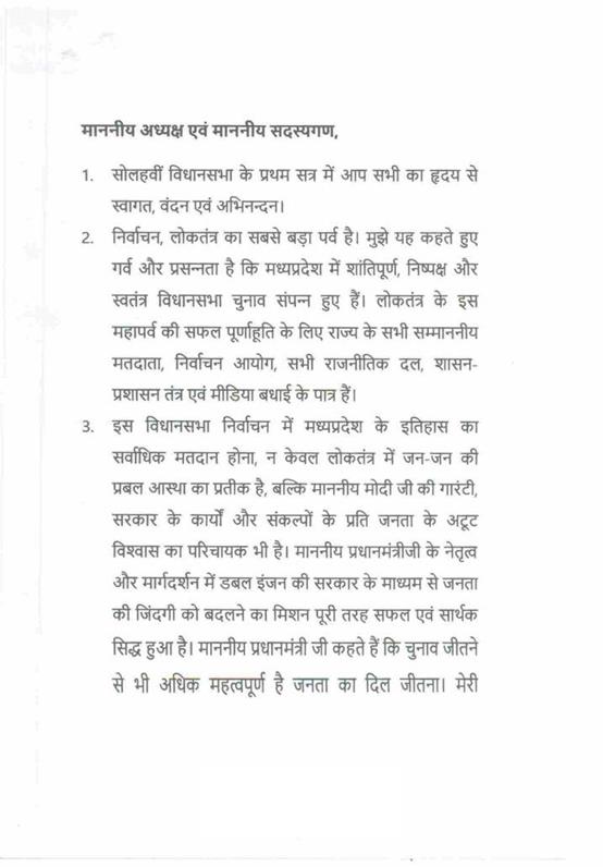 "राज्यपाल महोदय ने जो अभिभाषण दिया, उसके लिए मध्यप्रदेश की विधान सभा के इस सत्र में समवेत सदस्यगण अत्यंत कृतज्ञ हैं. "