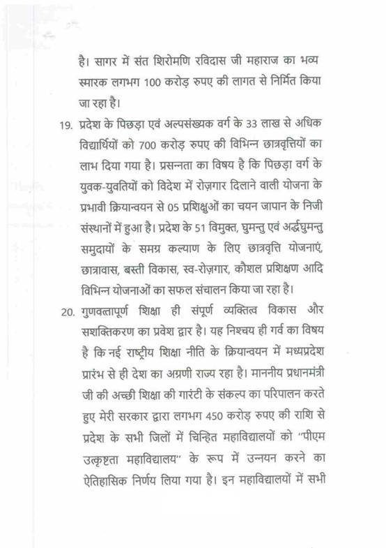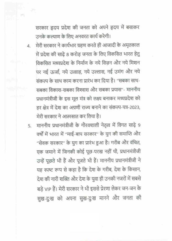 "राज्यपाल ने जो अभिभाषण दिया, उसके लिए मध्यप्रदेश की विधान सभा के इस सत्र में समवेत सदस्यगण अत्यंत कृतज्ञ हैं. "