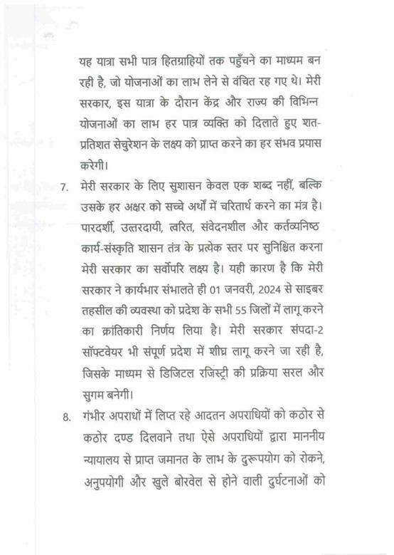 अध्यक्ष महोदय -- महामहिम राज्यपाल महोदय द्वारा अपने अभिभाषण के अधिकांश पैराग्राफ पढे़ गए हैं. शेष समस्त पैराग्राफ पढे़ हुए एवं अभिभाषण पटल पर रखा माना जाएगा.