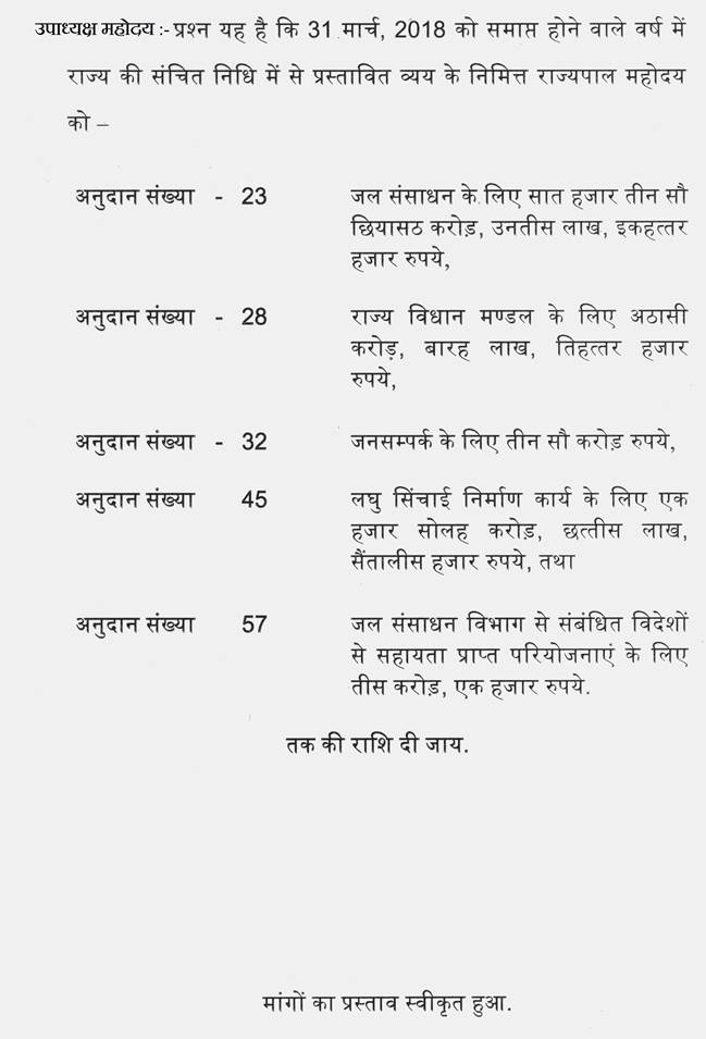 अपराह्न 8.51 बजे विधानसभा की कार्यवाही बुधवार, दिनांक 22 मार्च, 2017 ( 1 चैत्र, शक संवत् 1938 ) के पूर्वाह्न 11.00 बजे तक के लिये स्थगित की गई.