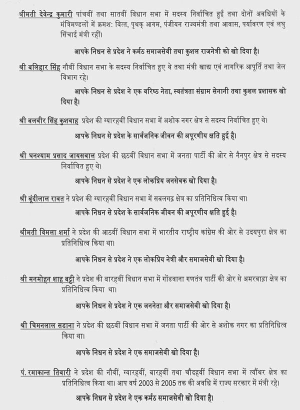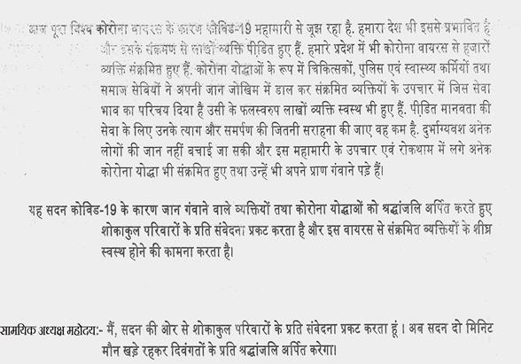 (23) जम्मू-कश्मीर के बारामूला में हुए आतंकी हमले में शहीद जवान, तथा (24) देश एवं प्रदेश में कोरोना वायरस कोविड-19 महामारी के संक्रमण से मृत व्यक्ति.