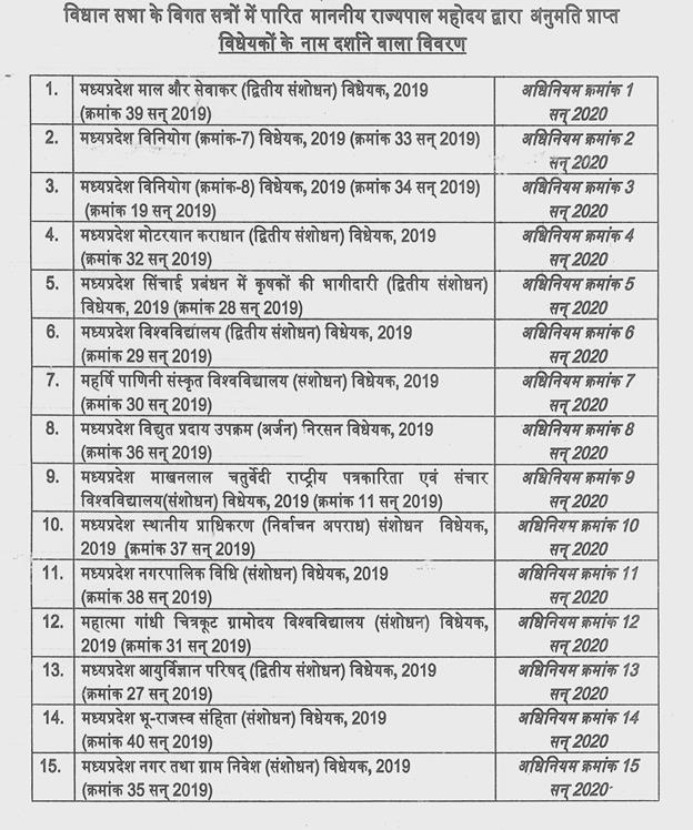 (छ) मध्यप्रदेश नगरपालिक विधि (संशोधन) अध्यादेश, 2020 (क्रमांक 10 सन् 2020),