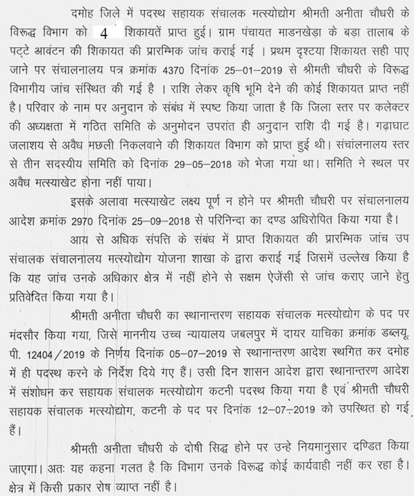 माननीय मंत्री जी, मेरा प्रश्न है कि क्या जिला सहकारी बैंक मंदसौर में अनूप कुमार जैन, एम.डी. की पदस्थापना के समय वेयर हाउस ऋण वितरण में 15 करोड़ रूपये की अनियमितता हुई थी, जिसमें अनूप कुमार जैन एवं बैंक के 40-50 कर्मचारियों को सहकारिता विभाग एवं नाबार्ड द्वारा जांच में दोषी पाया गया था. जांच के आधार पर क्या मंदसौर एवं नीमच में अनूप कुमार जैन, एम.डी. एवं बैंक के कर्मचारियों को सजा हुई, यदि हां तो अनूप कुमार जैन पर आज दिनांक तक कार्यवाही क्यों नहीं की गई.