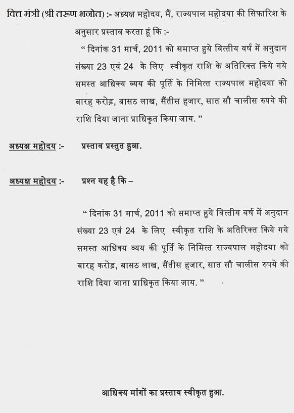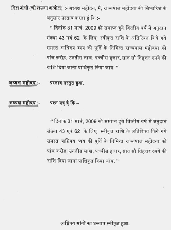 वित्त मंत्री (श्री तरुण भनोत) - अध्यक्ष महोदय, हमारे लिये बहुत महत्वपूर्ण है कि जो आदरणीय सदस्य विधायक निधि से काम कराते हैं उनका भुगतान तुरन्त हो और काम भी अविलंब हो. भुगतान के कारण काम में देरी न हो. ऐसा कोई भी एक प्रकरण आप मुझे बता दें. मैंने परिशिष्ट में जानकारी आपको पूरी उपलब्ध कराई है जहां तक आपके विधानसभा से जो संबंधित है पिछले 5 वर्ष में जितने भी कार्य आपने विधायक निधि से कराए, वे सब एक हफ्ते के अंदर भुगतान की स्थिति में आ गये हैं. हां, आप अगर कोई ऐसा तरीका और बताएं कि इसको हम और सरल कर सकते हैं तो हम उसको स्वीकार कर लेंगे.