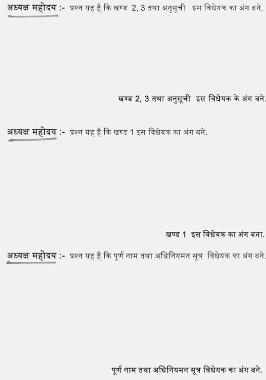 अध्यक्ष महोदय-- प्रश्न यह है कि पूर्ण नाम तथा अधिनियमन सूत्र विधेयक का अंग बने.