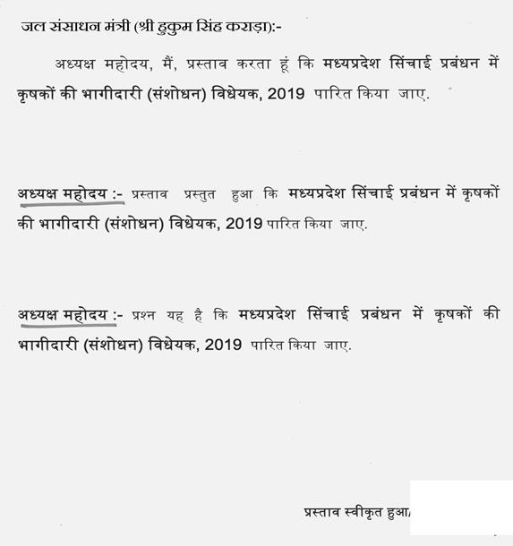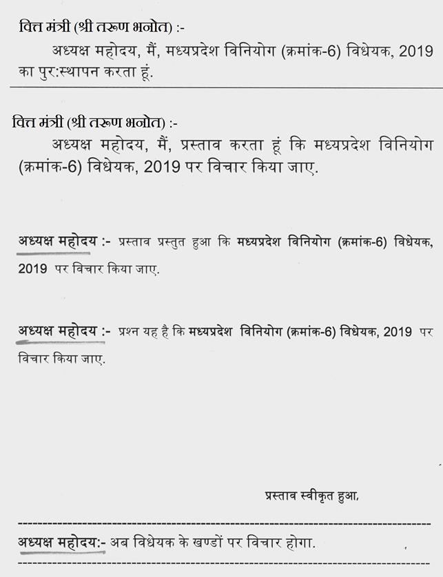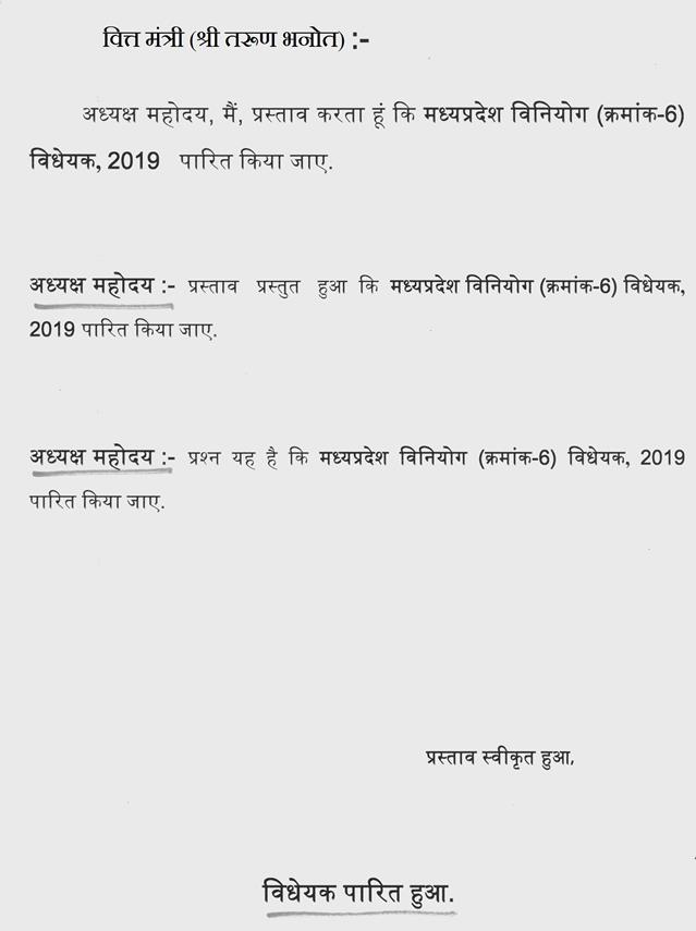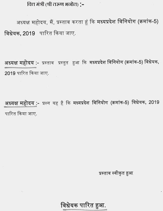प्रश्न यह है कि मध्यप्रदेश अधिवक्ता कल्याण निधि (संशोधन) विधेयक, 2019 पारित किया जाए.