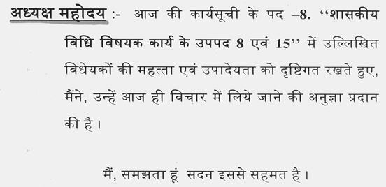 अध्यक्ष महोदय-- आज की कार्यसूची के पद क्रमांक 8 के उप पद 14 तक कार्य पूर्ण होने तक सदन के समय में वृद्धि की जाय. मैं समझता हूँ सदन इससे सहमत है.