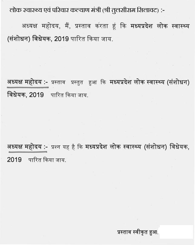 मध्यप्रदेश लोक स्वास्थ्य (संशोधन) विधेयक, 2019 (क्रमांक 20 सन् 2019)
