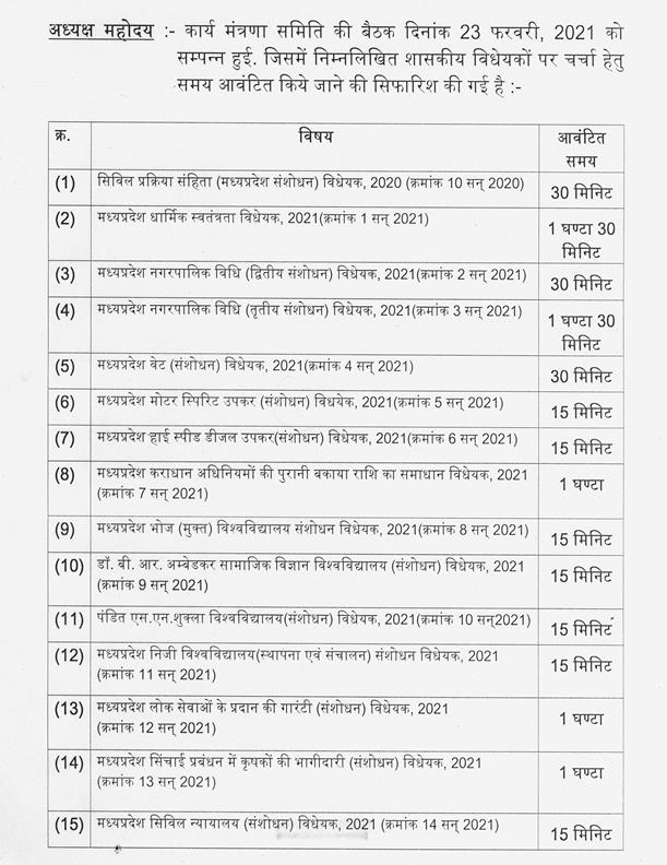 अपराह्न 5.31 बजे विधान सभा की कार्यवाही गुरुवार, दिनाँक 25 फरवरी, 2021 (6 फाल्गुन, शक संवत् 1942) के प्रात: 11.00 बजे तक के लिए स्थगित की गई.