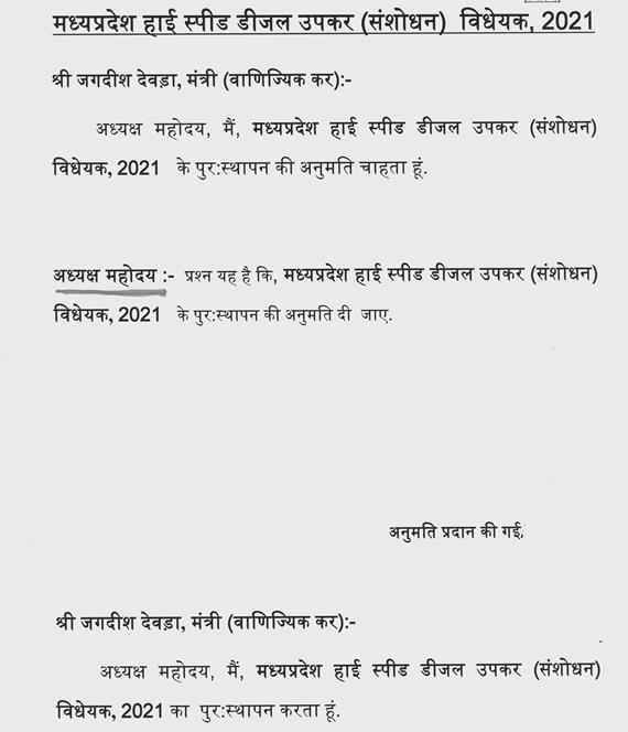 सभापति महोदय, आज पूरे प्रदेश के अंदर जो सबसे बड़ा मामला है और पूरा प्रदेश जिस चीज के लिये सरकार की ओर देख रहा है, जिस चीज का यहां पर कोई उल्लेख नहीं है, पैट्रोल और डीजल के दाम 100 रूपये तक पहुंच गये हैं. अब तो लोग कहते हैं कि '' अक्कड़ बक्कड़ बाम्बे बौ, अस्सी का डीजल और पैट्रोल के पूरे सौ'' इतना मोटा टैक्स प्रदेश सरकार अपनी वित्तीय स्थिति को सामने रखते हुए और वित्तीय स्थिति की दुहाई देते हुए टैक्स लगाये हुए है, आप केन्द्र का टैक्स कम नहीं कर सकते. आज अंतर्राष्ट्रीय कीमत कंट्रोल नहीं कर सकते. हम हमारे प्रदेश के अंदर जो प्रदेश सरकार का टेक्स है उसको कम करके जनता को राहत दे सकते हैं, पर एक जगह भी पूरे अभिभाषण में उसका उल्लेख नहीं किया गया है. कोरोना महामारी हमारे सामने आयी इसका सभी ने मिलकर मुकाबला किया. प्रदेश सरकार ने जो किया उसकी मैं आलोचना नहीं करूंगा. क्या हाल हैं हमारे जिला अस्पतालों के क्या हमें वहां ऑक्सीजन के सिलेण्डर समय पर मिल पा रहे थे. आपने अपने उद्बोधन में कहा कि गुना के क्या हाल हैं ? मैं राजगढ़ के बता दूं कि मध्यप्रदेश सरकार ने टेण्डर किया पूरे प्रदेश में सीटी स्केन व्यवस्था हर जिला अस्पताल में लागू हो, ऐसा टेण्डर है. पर अभी अधिकांश 50 प्रतिशत से ज्यादा जिला अस्पताल बिना सीटी स्केन के हैं इसके लिये हमारे कई सामाजिक कार्यकर्ताओं ने हाईकोर्ट के भी दरवाजे खटखटाये और उनका एक हलफ नामा सरकार जमा करती है कि अप्रैल 2021 के पहले सभी जिलों में सिटी स्केन की व्यवस्था करा दी जायेगी. हमने कई साथियों को कोरोना काल में खोया है, कई हमारे कोरोना वारियर्स, कई हमारे समाजसेवी, हमारे खुद के साथी हमारे जिले के ब्यावरा के विधायक आपने भी उसका उल्लेख किया है और मैं भी उनका उल्लेख करना चाहूंगा स्वर्गीय गोवर्धन दांगी जी को आप सब जानते हैं किस प्रकार से वह गरीब पलायनकर्ता मजदूरों की मदद कर खाना खिला रहे थे. अगर सीटी स्केन की व्यवस्था हमारे राजगढ़ जिला अस्पताल में होती तो शायद यह दुखद घटना नहीं होती और शायद हमारा साथी आज हमारे बीच में होता आज हम उनको नहीं खोते. जब मैंने पूछा जिलाधीश राजगढ़ से कि हमारे यहां पर सीटी स्केन की व्यवस्था क्यों नहीं की गई है ? उन्होंने कहा कि यहां कमरा उपलब्ध नहीं पाया इसलिये सीटी स्केन की व्यवस्था का टेण्डर जिसको दिया गया था वह आया और यहां पर उनको कमरा उपलब्ध नहीं हो पाया इसलिये यहां पर व्यवस्था नहीं की गई. क्या कमरे नहीं है ? क्या जिला अस्पतालों में कमरे नहीं हैं ? मैं सरकार के अपने साथियों से पूछना चाहता हूं कि यहां पर मंत्री जी भी विराजमान हैं. क्या जिला अस्पतालों में कमरे नहीं हैं ? या कमरे बनाये ही नहीं जा सकते थे या वैकल्पिक व्यवस्था किराये पर नहीं की जा सकती थी, परन्तु कोई ध्यान नहीं 