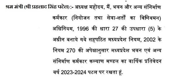अध्यक्ष महोदय - माननीय सदस्यगण, मध्यप्रदेश की सोलहवीं विधान सभा का पंचम सत्र अब समाप्ति की ओर है. इस सत्र में 09 बैठकें हुईं जिसमें विधायी,वित्तीय तथा लोक महत्व के अनेक कार्य सम्पन्न हुए.