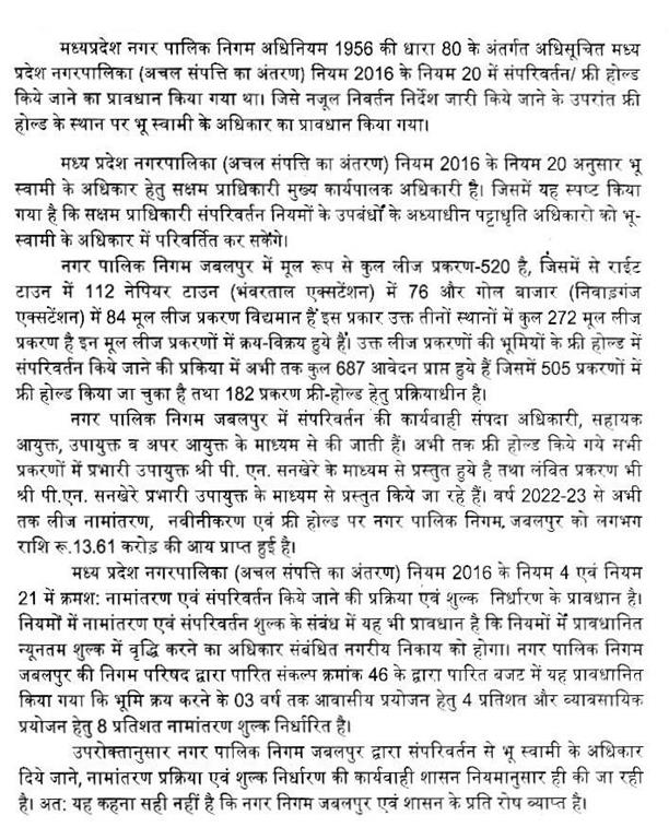अध्यक्ष महोदय, इसमें न कर्ज लेना है, न पैसा लगेगा. "न हींग लगे न फिटकरी और रंग आए चोखो." वाली बात है. कर्ज लेना है तो उनको लेना है जो जमीन को विकसित करेंगे, किसान को कोई कर्ज नहीं लेना है. यह प्रदेश के हित में, विकसित मध्यप्रदेश बनाने का बहुत बड़ा विधेयक है और यह प्रधानमंत्री जी तथा डॉ.मोहन यादव जी के सपनों का बिल है. (मेजों की थपथपाहट)