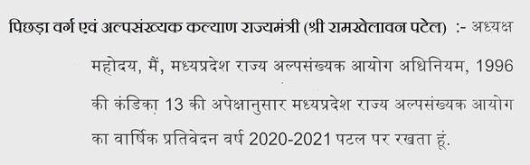 मध्यप्रदेश राज्य अल्पसंख्यक आयोग का वार्षिक प्रतिवेदन वर्ष 2020-2021