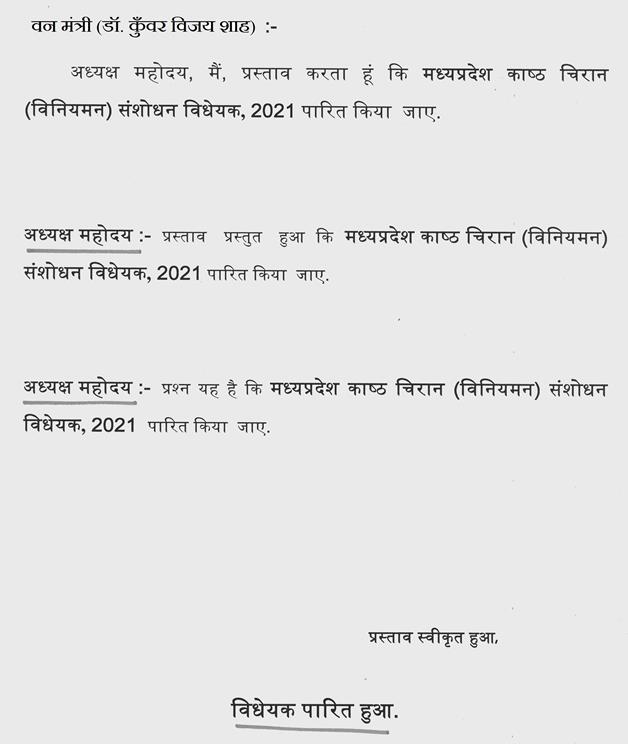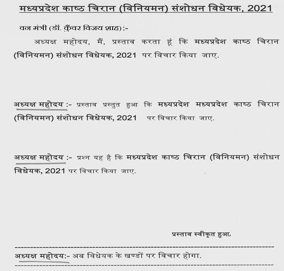 प्रश्न यह है कि मध्यप्रदेश ग्वालियर व्यापार मेला प्राधिकरण (संशोधन) विधेयक, 2021 पारित किया जाए.(...व्यवधान)