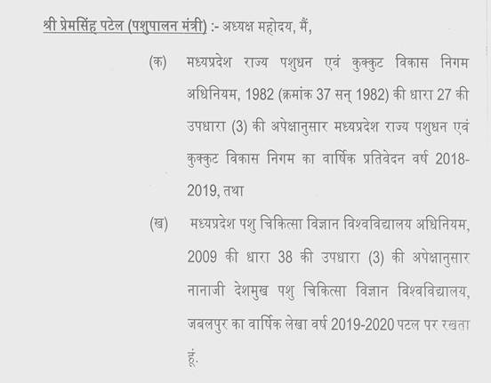 माननीय अध्यक्ष महोदय, 19 फरवरी 2021 को सुश्री जेनिफर ने एफआईआर दर्ज की, जोकि जिला विपणन अधिकारी महोदया हैं उन्होंने पिपलिया मंडी के थाना क्षेत्र में पिता-पुत्र दोनों के खिलाफ प्रकरण दर्ज करवा दिया है. एक शपथ पत्र में भी ठेकेदार ने इस बात की स्वीकारोक्ति प्रदान की है कि मुझे शासन से बिलों का जो भुगतान होना है उसमें से जो हेरा-फेरी की है, जो मैंने गबन किया है, चोरी-चकारी की है, उस राशि को समायोजित कर लिया जाए. अभी भी करीब डेढ़ करोड़ रुपए की राशि ठेकेदार को उन बिलों के अगेंस्ट लेना बाकी है. मैं माननीय मंत्री जी से सीधा-सीधा यह जानना चाहूंगा, यह उम्मीद करुंगा कि क्या ठेकेदार की शेष डेढ़ करोड़ रुपए की राशि कैसे प्राप्त होगी, क्या उसकी सम्पत्ति को राजसात किया जाएगा और यह वैधानिक भी है, विधिसम्मत भी है.