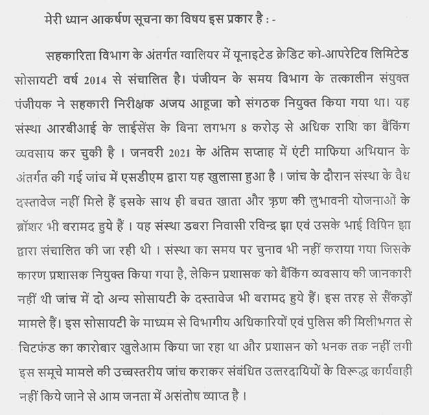 श्री यशपाल सिंह सिसौदिया -- यह आपके ही कालखंड का है. मुझे कहलवाइए मत. दिसम्बर में आपकी सरकार थी. दिसम्बर 2020 की घटना है. 2 दिसम्बर को घोटाला हुआ है. आपके ही संरक्षण में हुआ होगा. मैं माननीय मंत्री जी से जानना चाहूंगा कि जिला सहकारी केन्द्रीय बैंक के प्रबंधक विपणन संद्य और स्टेट वेयर हाऊसिंग कार्पोरेशन इन सबकी क्या..(व्यवधान)...