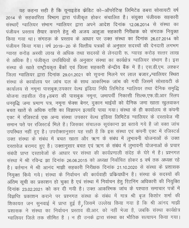 मैं माननीय मंत्री जी से यह भी जानना चाहूंगा कि जो ठेकेदार है, उस ठेकेदार ने क्या पिछले 5-10 वर्षों से कोई अनुबंध करके इतना बड़ा काम हाथ में लिया है. मुझे जानकारी मिली है कि न तो ठेकेदार को कार्यादेश मिला है और न उनका कोई अनुबंध निष्पादित है. ऐसी स्थिति में यदि वह बिना अनुबंध के कोर्ट जाएगा, तो मुझे लगता है कि यह राशि भी वसूल नहीं हो पाएगी और जो राशि वसूल कर ली गई है वह भी शायद उसको शासन को लौटाना पड़ जाएगा. इसमें एक अनुबंध की कमी है. मैं मंत्री जी यह जानना चाहता हॅूं कि अनुबंध की क्या प्रक्रिया हुई, उसका वर्कऑर्डर हुआ या नहीं ? शेष राशि, सम्पत्ति उसकी किस प्रकार से राजसात होगी ? तीसरा जिला सहकारी केन्द्रीय बैंक के जो महाप्रबंधक हैं उनका और उन सोसायटियों के संबंध में हमें यह भी जानकारी मिली थी कि कुछ प्रबंधकों को निलंबित कर दिया गया, मैंने इस संबंध में प्रश्न भी पूछा था. कुछ सोसायटियों के प्रबंधकों को निलंबित कर दिया गया है. केवल खानापूर्ति की गई. मेरा यही कहना है कि क्या उन सोसायटियों के प्रबंधकों को निलंबित कर दिया गया था ?