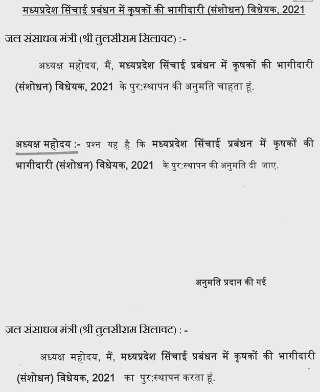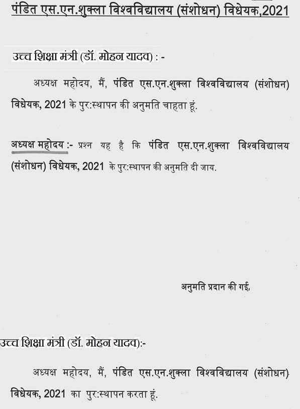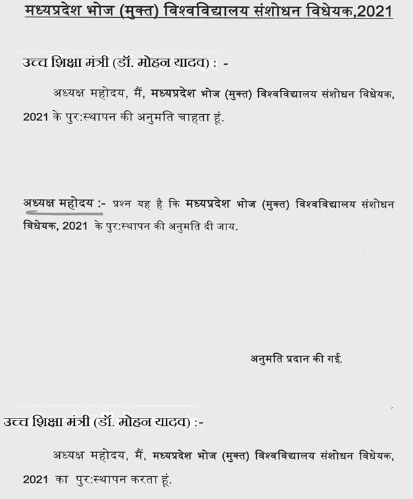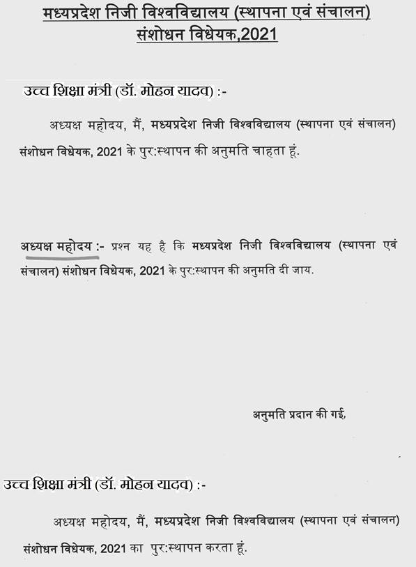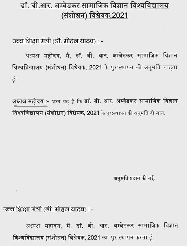 राज्यपाल के अभिभाषण पर डॉ. सीतासरन शर्मा, सदस्य द्वारा दिनांक 22 फरवरी, 2021 को प्रस्तुत प्रस्ताव पर चर्चा का पुनर्ग्रहण.(क्रमश:)