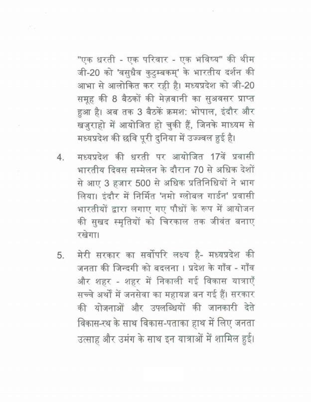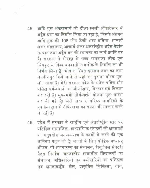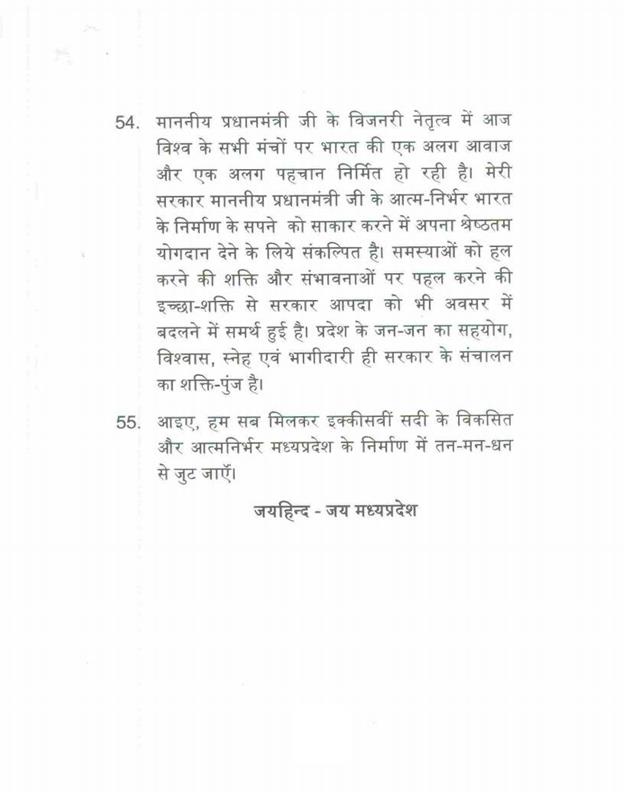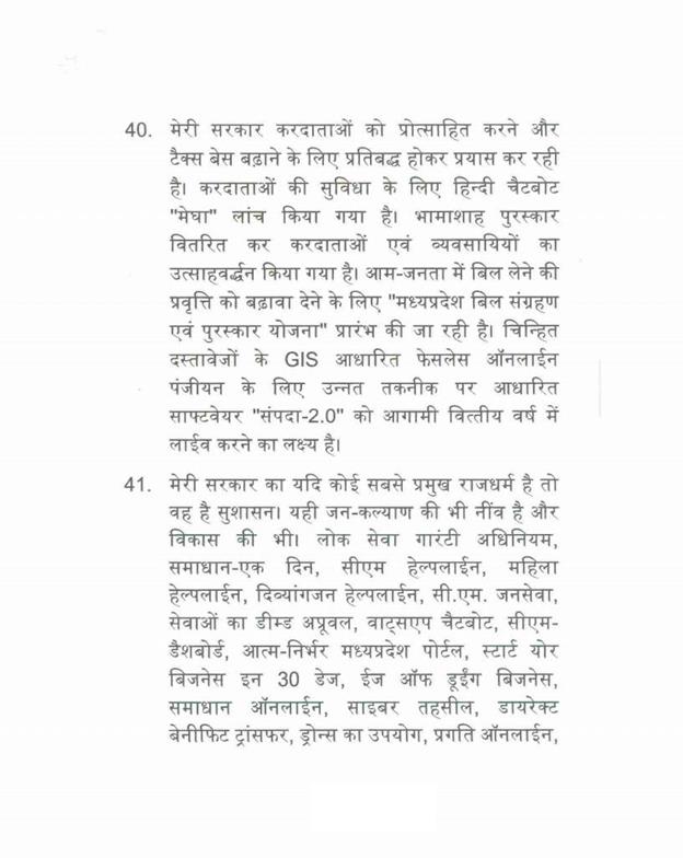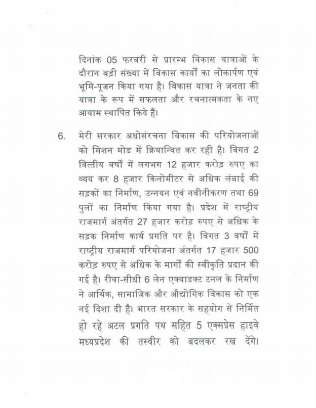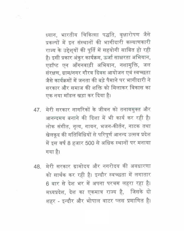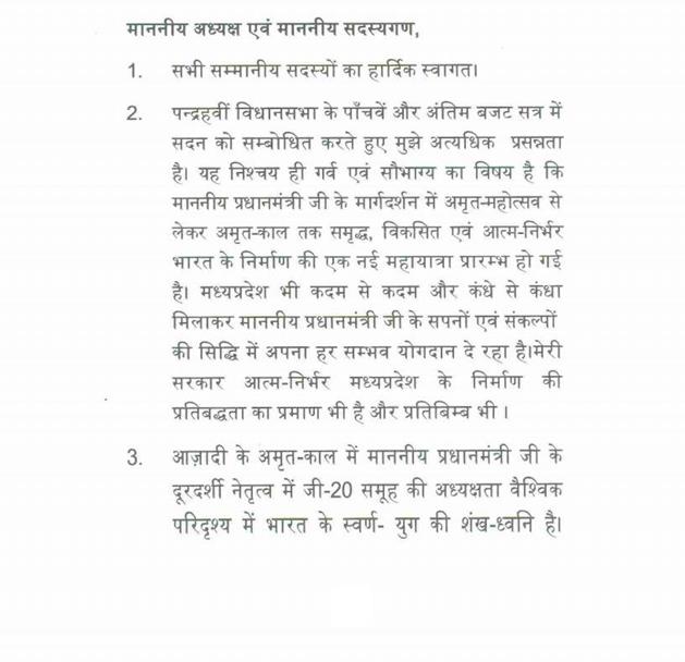 ''राज्यपाल ने जो अभिभाषण दिया, उसके लिए मध्यप्रदेश की विधान सभा के इस सत्र में समवेत सदस्यगण अत्यंत कृतज्ञ हैं''.