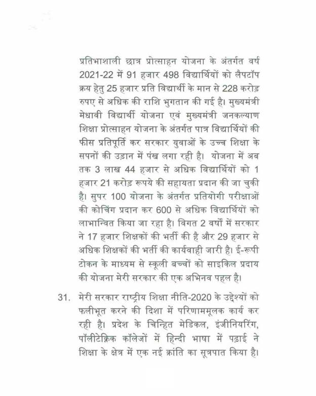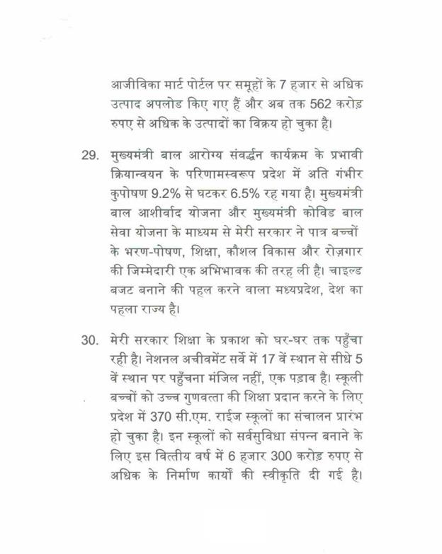 राज्यपाल महोदय द्वारा अभिभाषण के शेष समस्त पैराग्राफ पढे हुये माने जाना