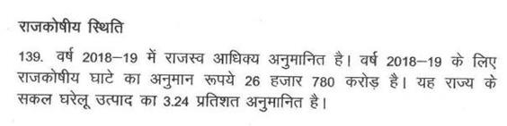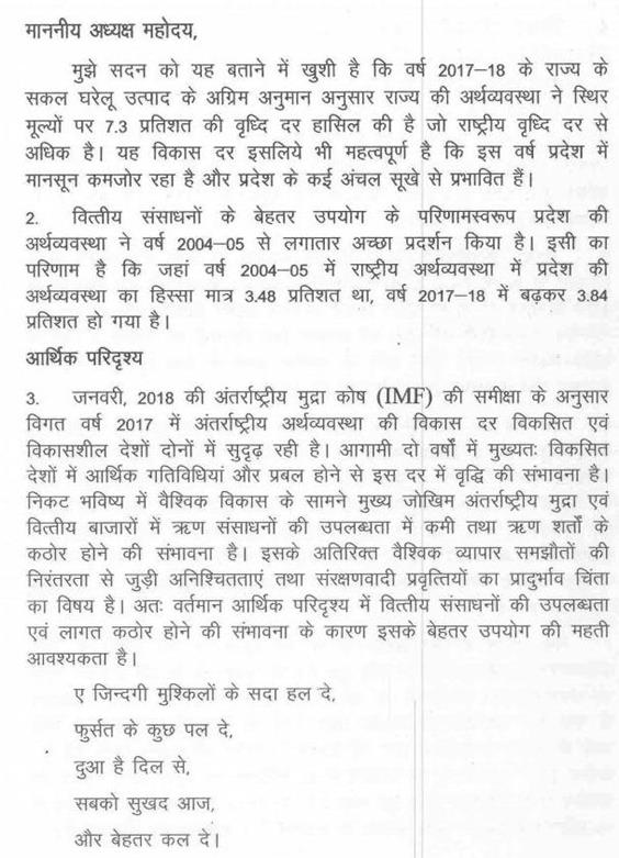 वित्तमंत्री (श्री जयंत मलैया) -- अध्यक्ष महोदय, मैं राज्यपाल महोदय के निर्देशानुसार वर्ष 2018-19 के आय-व्ययक के उपस्थापन के साथ-साथ मध्यप्रदेश राजकोषीय उत्तरदायित्व एवं बजट प्रबंधन अधिनियम, 2005 के अंतर्गत यथा-अपेक्षित राजकोषीय नीति का विवरण वर्ष 2018-2019 सदन के समक्ष रखता हूं. धन्यवाद.