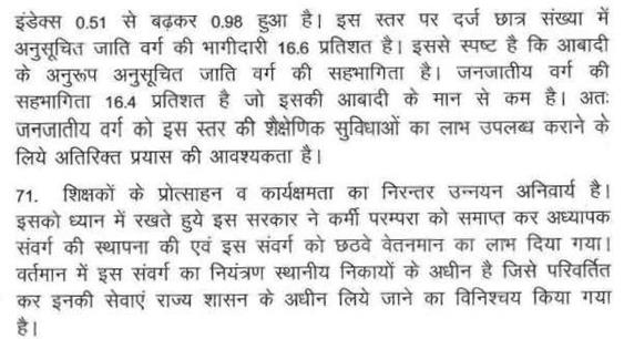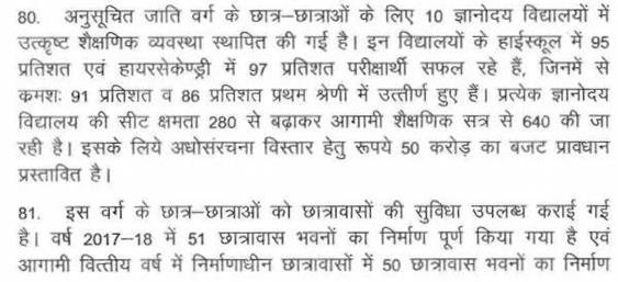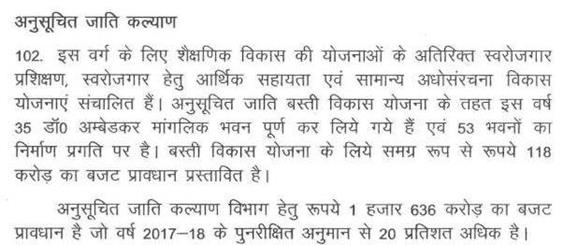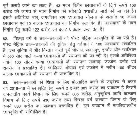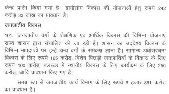 श्री बाला बच्चन -- माननीय अध्यक्ष महोदय, पिछले तीन साल का दो हजार करोड़ रूपए अनुसूचित जाति एवं अनुसूचित जनजाति के विकास पर खर्च करना था. दो हजार करोड़ रूपए सरकार ने खर्च नहीं किया है. विधानसभा में यह मुद्दा मेरे द्वारा उठाया गया था. यह मेरे प्रश्न के जवाब में है. अनुसूचित जनजाति विकास के लिए बजट में प्रोवीजन तो किया जाता है लेकिन खर्च कहीं और किया जाता है.