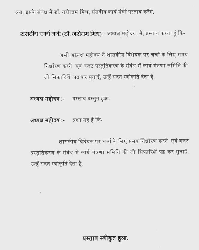 5.30 बजे राज्यपाल के अभिभाषण पर प्रस्तुत कृतज्ञता ज्ञापन प्रस्ताव एवं संशोधनों पर चर्चा (क्रमशः)