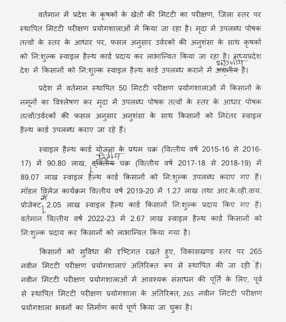 सभापति महोदय, रोजगार की जहां बात चलती है तो "प्रधानमंत्री स्वनिधि योजना" के माध्यम से लगभग सवा पांच लाख लोगों को 10-20-50 हजार रुपये, बिना ब्याज का ऋण सरकार ने दिया है. मध्यप्रदेश इसमें अग्रणी राज्यों में शामिल रहा है. विपक्ष के बंधुओं के यहां भी निश्चित ही मिला होगा, आज चाहे आप स्वीकार नहीं कर रहे हैं लेकिन हर विधान सभा क्षेत्र में, हर ब्लॉक में, इस योजना से लोगों को ऋण मिला है. साथ ही साथ सबसे बड़ी बात यह है आज अस्पतालों में लगभग 350 तरह की दवायें नि:शुल्क मिल रही है. डायलिसिस और सी.टी.स्कैन जैसी सुविधायें हमने जिला मुख्यालयों पर मुहैया करवाई हैं. स्वास्थ्य के क्षेत्र में आज मध्यप्रदेश में विभिन्न राज्यों के मरीज इलाज करवाने आ रहे हैं. इसका कारण यह है कि मध्यप्रदेश की सरकार ने स्वास्थ्य सेवाओं का भी उन्नयन किया है. जहां सरकार विकास तो कर रही, जहां सरकार भौतिक सुख-सुविधायें जुटा रही है, अच्छी सड़कें बना रही है, प्रधानमंत्री सड़कों का, सुदूर सड़कों का, नेशनल हाईवे का काम हो रहा है. संजय भईया एक समय पर जब आपकी सरकार थी और हम जबलपुर जाते थे तो 8 घंटे लगते थे लेकिन अभी मुझे एक कार्यक्रम में जाना हुआ तो केवल 4 घंटे में, मैं, जबलपुर पहुंच गया.