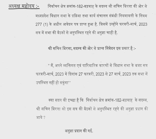 दिनांक : 28 फरवरी, 2023 मध्यप्रदेश विधान सभा