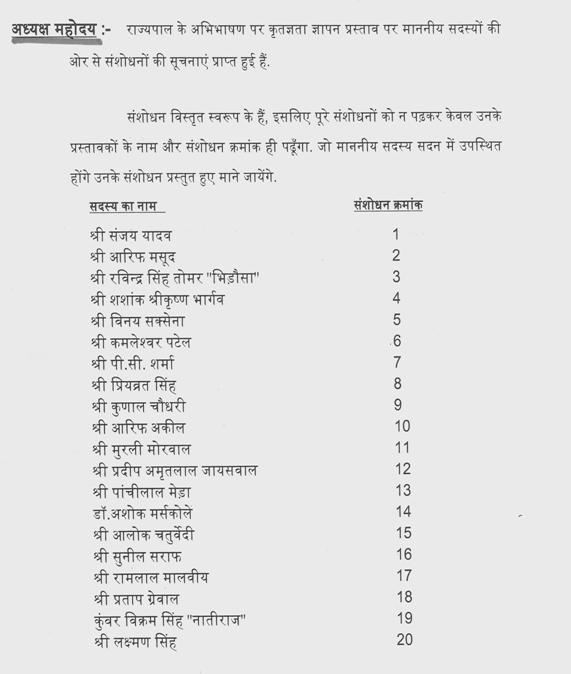 मैं माननीय मुख्यमंत्री जी से अनुरोध करता हूं कि मध्यप्रदेश के एक राजनेता ने पूरे देश की राजनीति को दिशा दी हो, ऐसे महान व्यक्ति की प्रतिमा शासन की ओर से लगायी जाये तो मैं, मुख्य मंत्री जी का आभार व्यक्त करूंगा. इसी के साथ मैं पुन: सभी दिवंगत नेताओं के चरणों में प्रणाम करता हूं और ईश्वर से प्रार्थना करता हूं कि वह सबकी आत्मा को शांति दे.