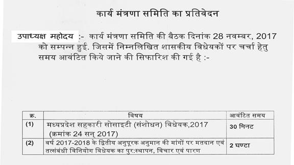 मध्यप्रदेश सहकारी सोसाइटी (संशोधन) विधेयक, 2017 (क्रमांक 22 सन् 2017)