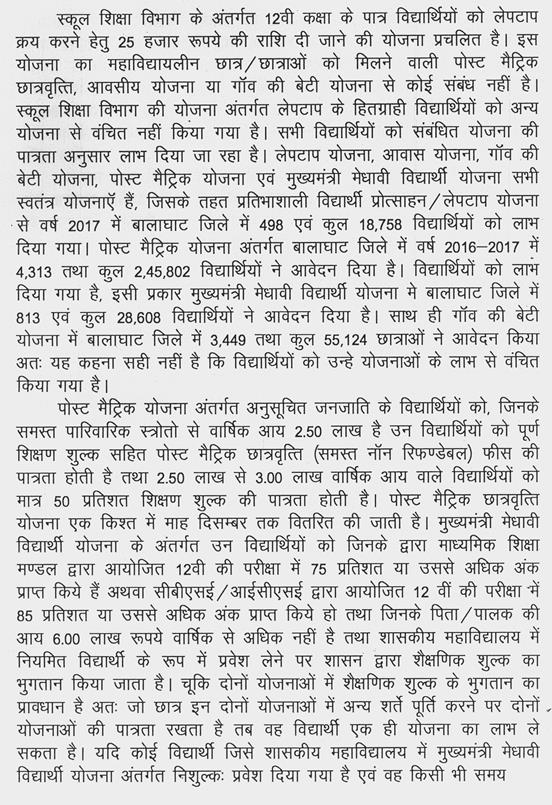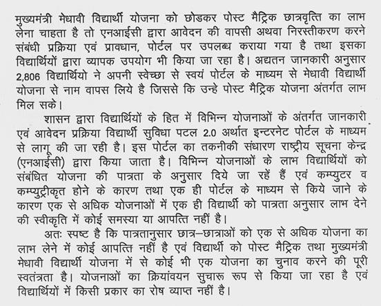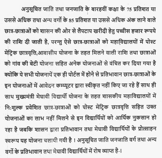 2. प्रदेश के महाविद्यालयों में छात्र-छात्राओं को पोस्ट मैट्रिक छात्रवृत्ति योजनाओं का लाभ न मिलने के संबंध में.