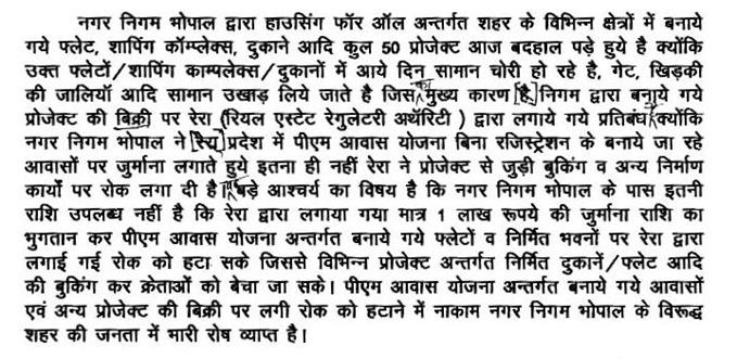 श्री विपीन जैन -- अध्यक्ष महोदय, मंदसौर में स्थित कालाखेत जो कि मंदसौर का हृदयस्थल कहा जाता है, वर्ष 2002 में वहां पर गृह निर्माण मण्डल द्वारा 145 दुकानों का निर्माण किया गया. उन 145 दुकानों में से 104 दुकान सरकार द्वारा नीलाम की गईं और 104 दुकानों को जिन व्यापारियों ने खरीदा था उन्होंने सरकार को उनका रुपया जमा कर दिया, उसके बावजूद वहां पर एक विशेष समुदाय के लोग झोपडि़यां बनाकर रहते हैं, उनकी दुकानों के सामने झोपडि़यां बना रखी हैं और 20 से 25 दुकानों पर उन्होंने कब्जा कर रखा है. 20-22 वर्षों से यह समस्या जैसी की तैसी आज भी खड़ी है, तो मेरा माननीय मंत्री जी से निवेदन है, मंत्री जी का जवाब आया है कि वहां पर दुकानों के बाहर उन्होंने झोपडि़यां बना रखी हैं लेकिन मैं माननीय मंत्री जी से निवेदन करता हूं कि बाहर उन्होंने झोपडि़यां तो बना रखी हैं लेकिन 20 से 25 दुकानों पर उन्होंने कब्जा भी कर रखा है. मैंने एक शून्यकाल लगाया था उसमें सरकार का ही यह जवाब आया था कि 25 दुकानों पर उनका कब्जा भी है, तो मेरा आपसे निवेदन है कि वह जो समुदाय वहां रहता है उनको आप अन्य कहीं जगह दे दें, उनको पट्टे दे दें, या प्रधानमंत्री आवास में मकान दे दें और जिन लोगों ने वहां पर दुकान खरीदीं उनकी क्या गलती है.