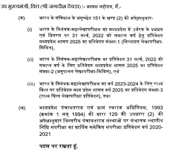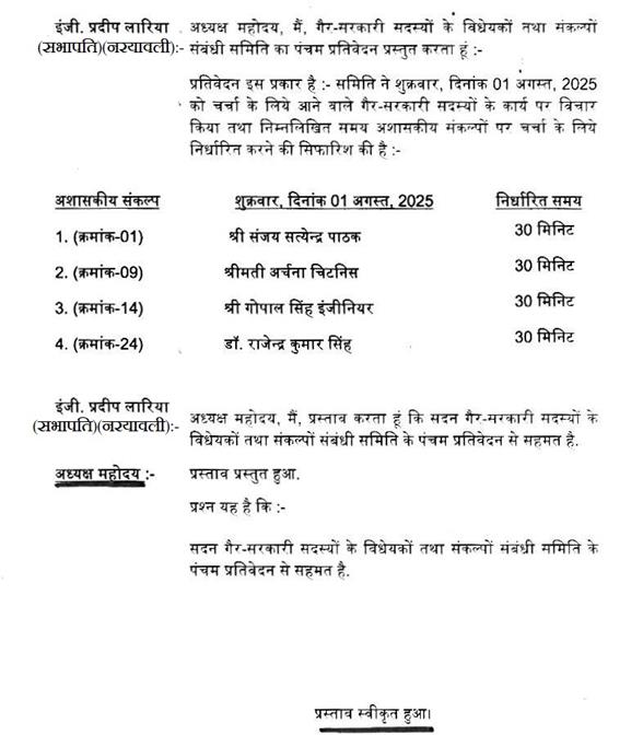 अपराह्न 7.00 बजे विधान सभा की कार्यवाही शुक्रवार, दिनांक 1 अगस्त, 2025 (10 श्रावण, शक संवत् 1947) को प्रातः 11.00 बजे तक के लिए स्थगित की गई.