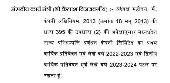 श्री कैलाश विजयवर्गीय- महोदय, उत्तर सदन के पटल पर प्रस्तुत है.