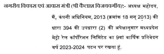 अध्यक्ष महोदय, हमने सरकार के माध्यम से शुरुआत की थी और सरकार ने पहले टेंडर बुलाया और अब पूरी की पूरी एक कंपनी बन गई है. कंपनी बनने के बाद हमने वर्ष 2014-2015 में एक कंपनी बनाई और वर्ष 2018 में हमें स्वीकृति मिली और वर्ष 2018 के बाद कभी भी किसी शहर के अंदर कोई भी प्लान बनता है तो उसका बजट निर्धारित नहीं हो सकता है, अनुमानित बजट हो सकता है. मैं एक उदाहरण देना चाहूंगा कि हम इंदौर में ब्रिज बना रहे हैं. वह ब्रिज 18 करोड़ रुपए की लागत का था और जहां ब्रिज बना रहे हैं वहां पर वॉटर लाइन थी, वहां बिजली की अंडरग्राउंड लाइन थी. वह भी हमारे ब्रिज के ऊपर लोड हो गई. वह बजट 18 करोड़ रुपए से बढ़कर 24 करोड़ रुपए का हो गया क्योंकि पानी की बड़ी लाइन थी उसको शिफ्ट करना पड़ा. ग्रीन फील्ड पर हम जो अनुमान लगाते हैं बजट उसके आसपास ही जाता है परंतु विकसित शहर कि अंदर जब कुछ भी काम करते हैं तो बजट अनुमान कभी भी सही नहीं हो सकता है. इसलिए आपको लगता है कि आपने जो प्रश्न पूछा था उसका जवाब ठीक नहीं दिया गया, लेकिन जब हम वास्तव में काम करने जाते हैं तो बाद में पता लगता है कि इसमें यह अतिरिक्त खर्च और आ गया है तो इसलिए सप्लीमेंट्री डीपीआर फिर बनाई. इसका समय बढ़ता जा रहा है. दो साल कोविड़ के भी खराब हो गये इसलिए समय बढ़ता जा रहा है और इसके बजट का साइज़ भी बढ़ता जा रहा है, परंतु इस बात के लिए हमें गर्व करना चाहिए कि भोपाल राजधानी है और हमारे प्रधानमंत्री जी, मुख्यमंत्री जी के सहयोग से मेट्रो आ रही है. इंदौर में प्रथम चरण आ गया है. भोपाल में भी प्रथम चरण आने वाला है और द्वितीय चरण के लिए भी काम चल रहा है. आप बजट पर मत जाईये लेकिन यह बात सही है कि भोपाल और इंदौर के नागरिकों को सुविधा देंगे और उसके साथ जबलपुर और ग्वालियर का सर्वे चल रहा है.