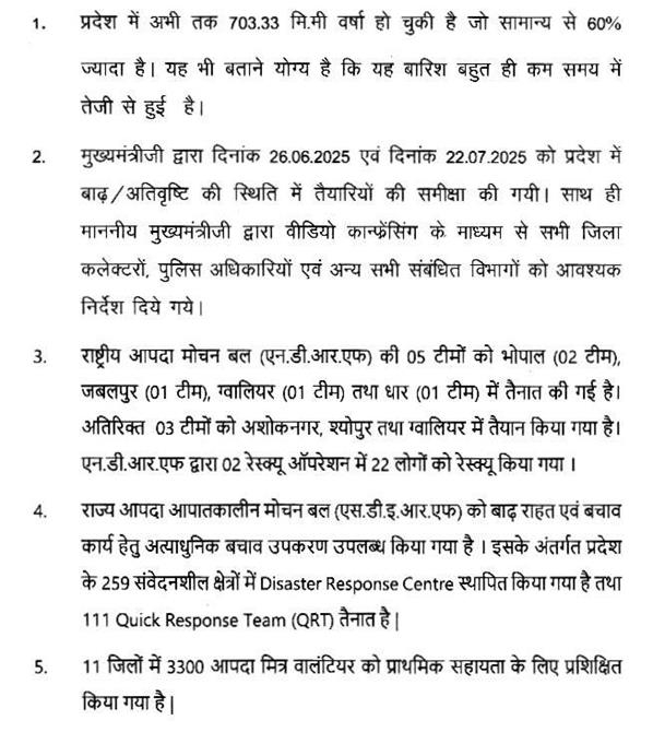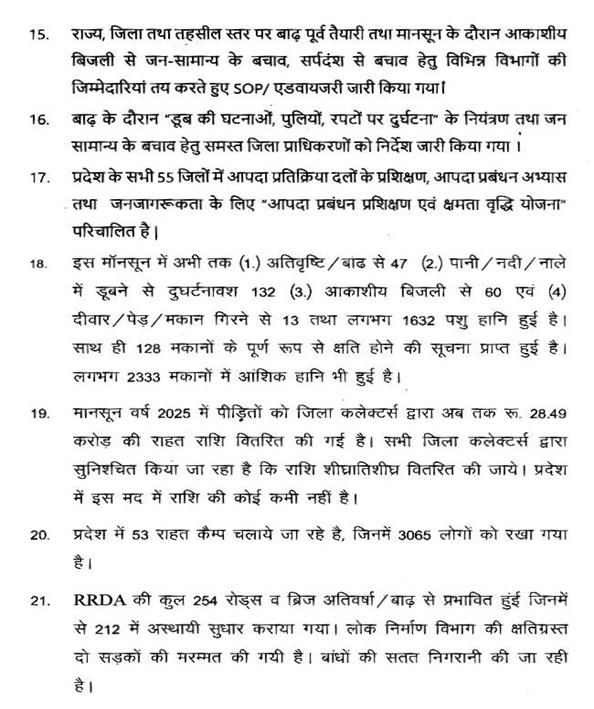 अति वृष्टि एवं बाढ़ से प्रभावित क्षेत्रों में राहत कार्यों के संबंध में नगरीय विकास एवं आवास मंत्री का वक्तव्य