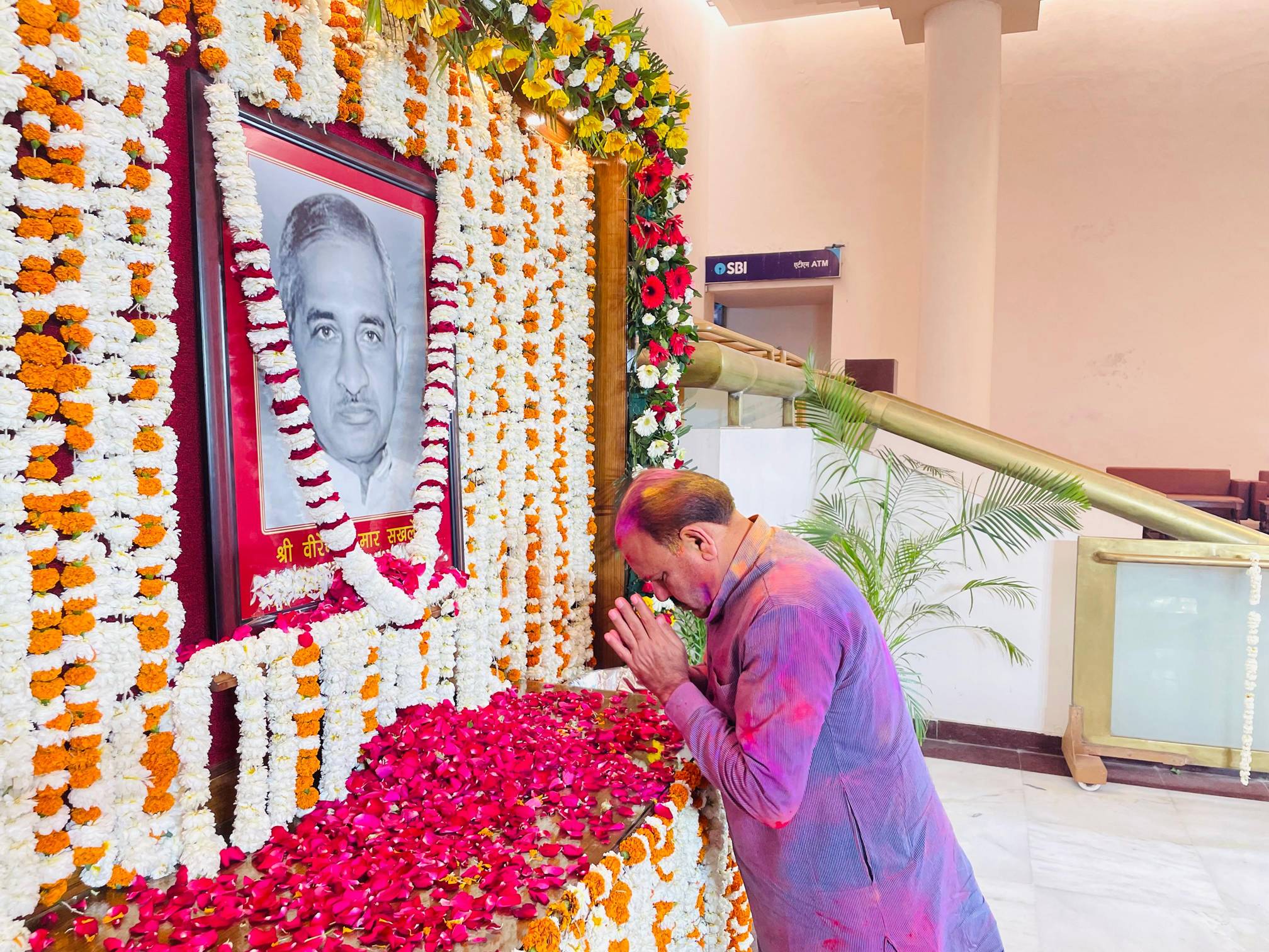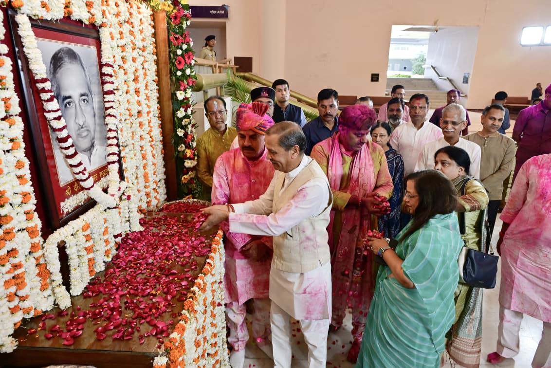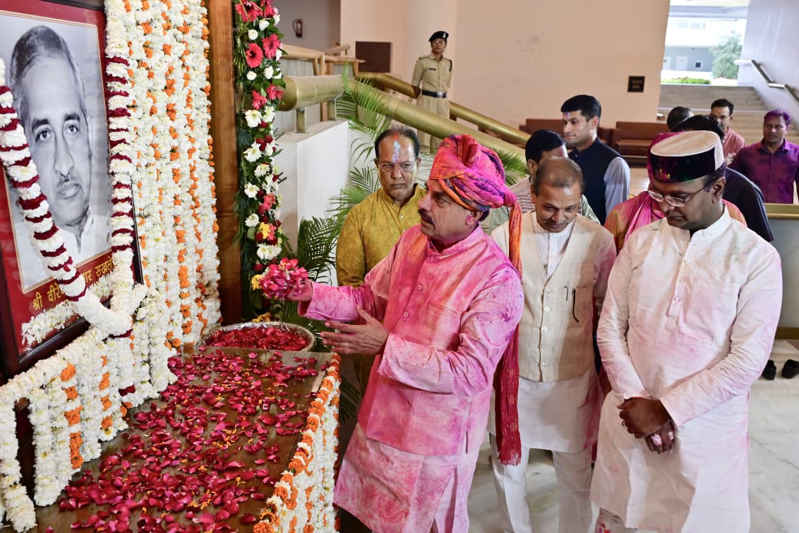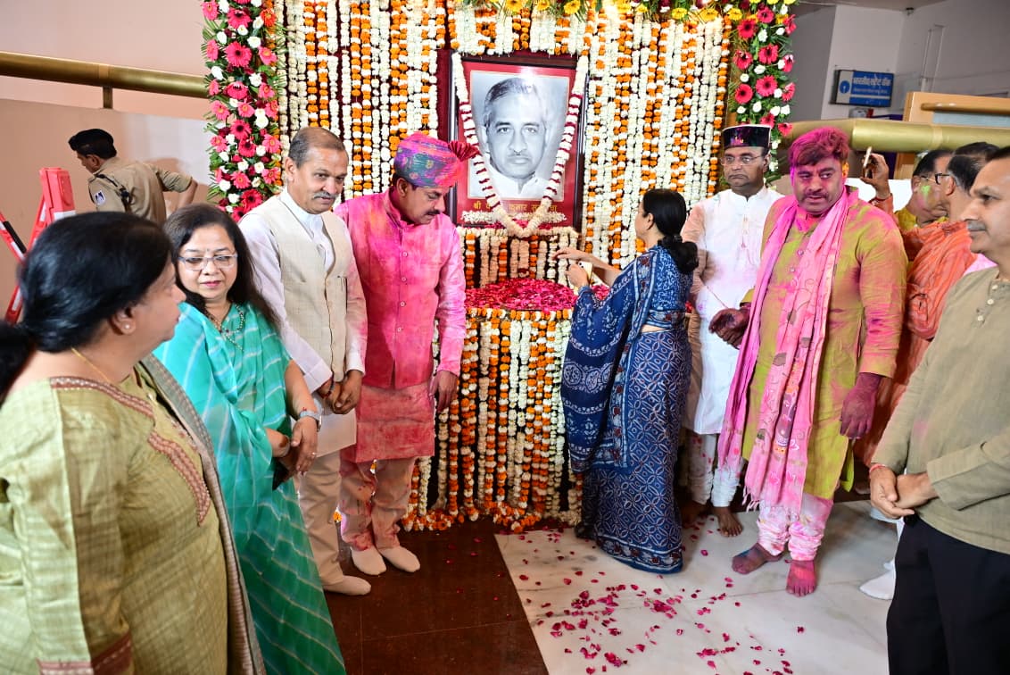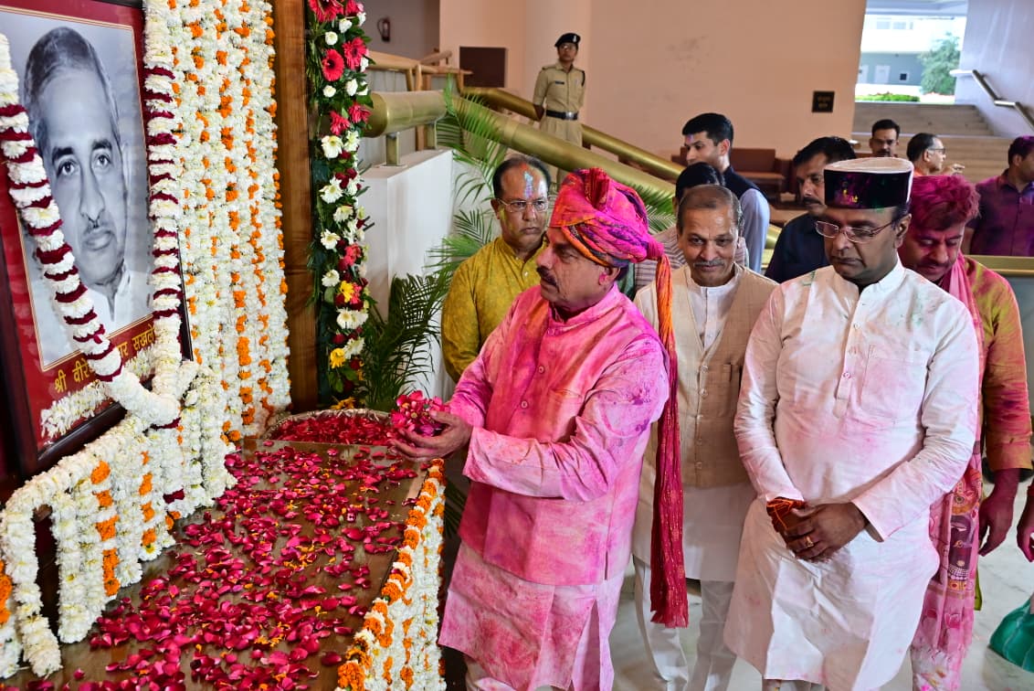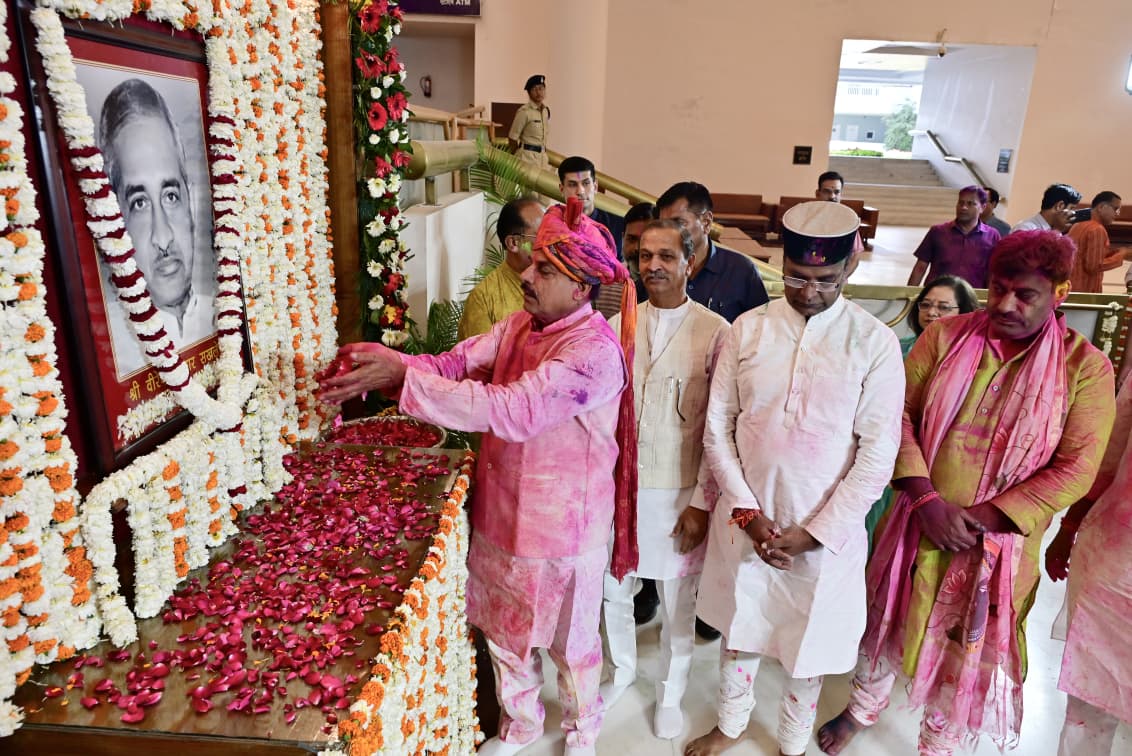 मध्यप्रदेश के पूर्व माननीय मुख्यमंत्री स्व. श्री वीरेंद्र कुमार सखलेचा जी की जयंती पर आज बुधवार को विधान सभा के सेंट्रल हाल में विधान सभा की ओर से पुष्पांजलि कार्यक्रम आयोजित हुआ ।आयोजित कार्यक्रम में मुख्यमंत्री डॉ मोहन यादव, विधान सभा के पूर्व प्रोटेम स्पीकर श्री रामेश्वर शर्मा,मंत्री श्री विश्वास सारंग, माननीय पूर्व मुख्यमंत्री के तीन सुपुत्र श्री ओम प्रकाश सखलेचा (विधायक),श्री राजकुमार सखलेचा,श्री विजय कुमार सखलेचा, विधायकगण श्री भगवान दास सबनानी, श्री विष्णु खत्री एवं अपर सचिव श्री मयंक वर्मा सहित बड़ी संख्या में विधान सभा के अधिकारी एवं कर्मचारी भी उपस्थित थे। (04/03/2026)