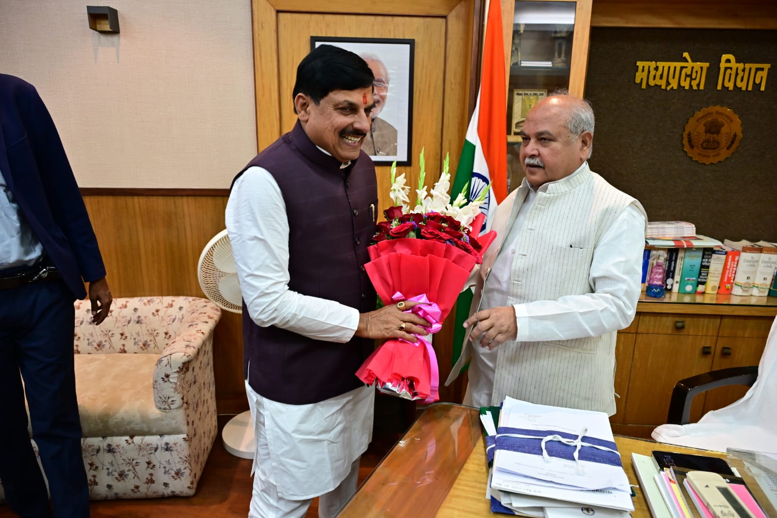 बजट सत्र के प्रथम दिवस पर आज माननीय विधान सभा अध्यक्ष जी के कक्ष में माननीय अध्यक्ष जी को पुष्पगुच्छ भेंट कर माननीय मुख्यमंत्री/उप मुख्यमंत्री/संसदीय कार्य मंत्री/तथा मंत्रीमंडल के सदस्यों ने भेंट की ।