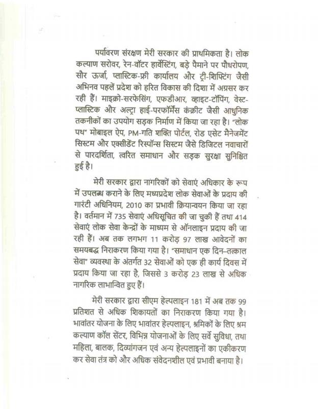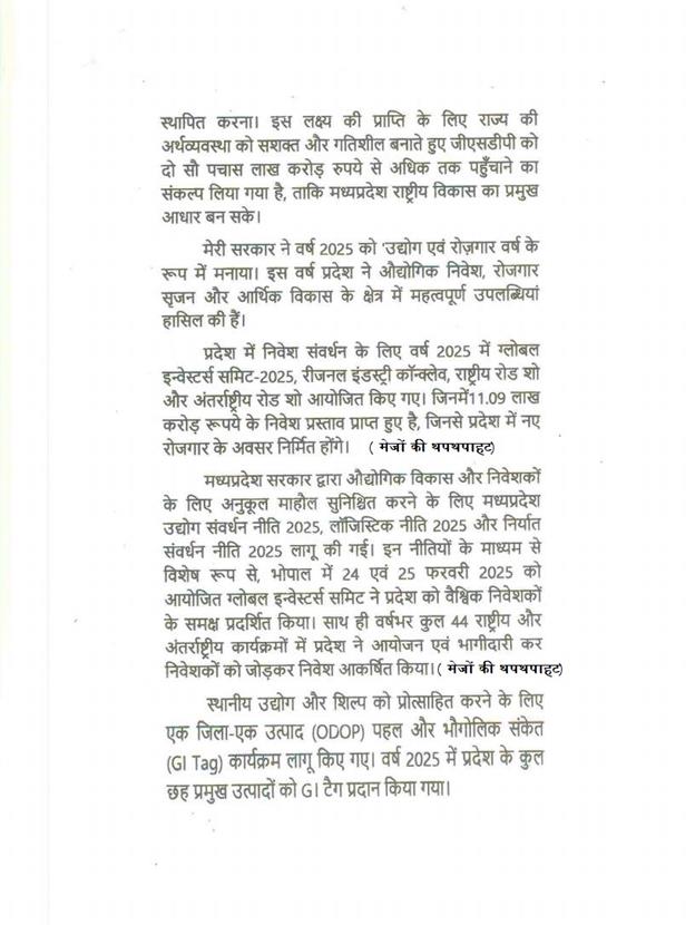 राज्यपाल महोदय के अभिभाषण में शेष अंश