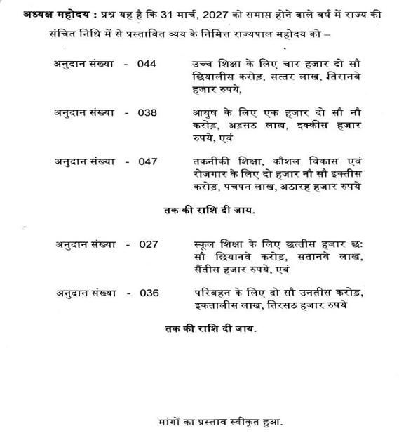 रात्रि 09.42 बजे विधानसभा की कार्यवाही शुक्रवार, दिनांक 27 फरवरी, 2026 ( 8 फाल्गुन, शक संवत् 1947 ) के पूर्वाह्न 11.00 बजे तक के लिये स्थगित की गई.