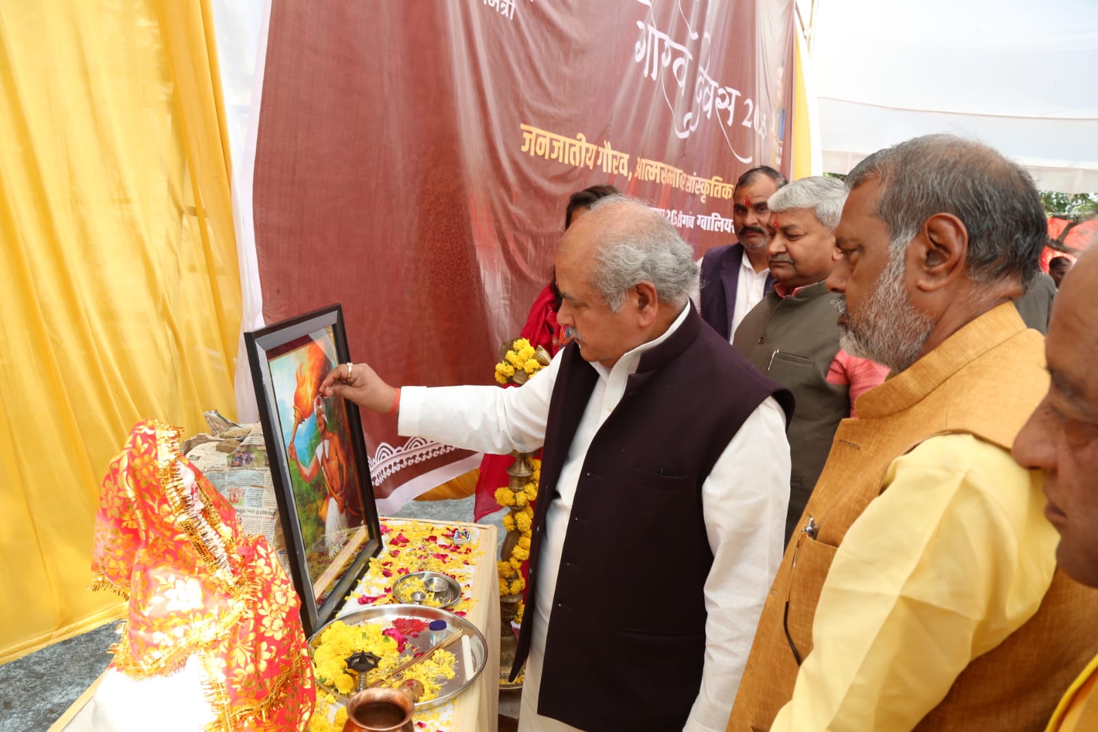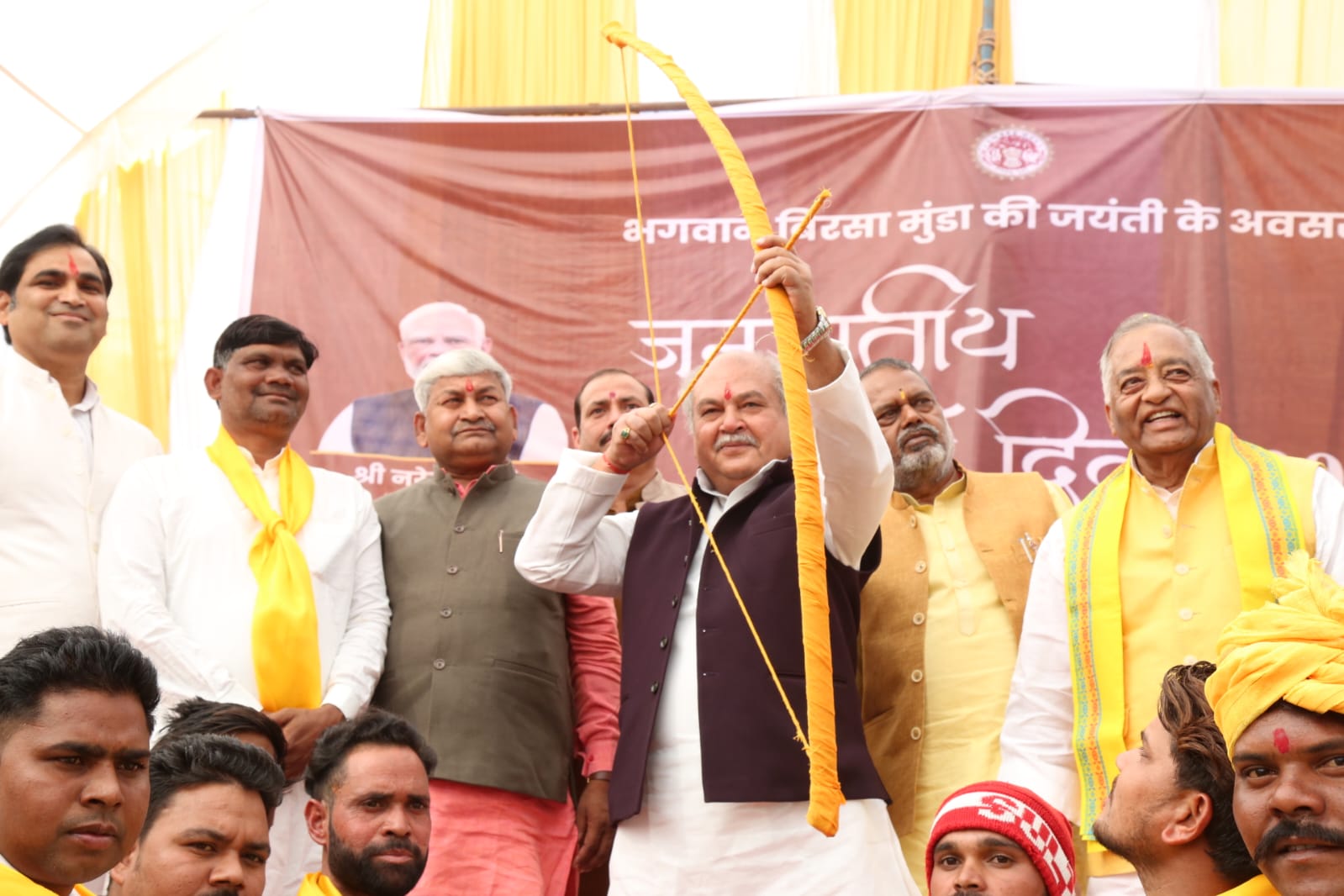 आरंभ में अतिथियों ने भगवान बिरसा मुण्डा के चित्र पर माल्यार्पण एवं दीप प्रज्ज्वलन कर कार्यक्रम का शुभारंभ किया। राष्ट्रगीत वंदे मातरम् के सामूहिक गायन के साथ कार्यक्रम का शुभारंभ हुआ। सहरिया जनजाति के लोगों ने इस अवसर पर तीर कमान सौंपकर एवं पुष्पाहारों से मुख्य अतिथि श्री तोमर सहित अन्य अतिथियों का आत्मीय स्वागत किया।